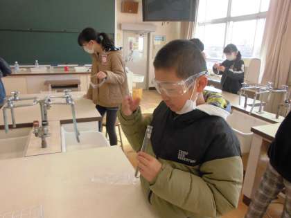 6年生 理科「水溶液の性質とはたらき」の授業 公開日 2021/02/18 更新日 2021/02/18 お知らせ 5種類の水溶液(食塩水・石灰水・塩酸・アンモニア水・炭酸水)の見た目やにおいの違いについて調べています。
