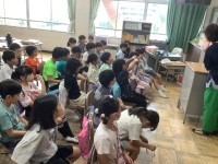 生活科の時間に、ビオトープで春の生き物さがしをしました。雨上がり後のいい天気だったので、植物も生き物たちもいきいきとしていて、子どもたちは一生懸命観察していました。ちょうどトンボが羽化したばかりの様子を見ることができて、大喜びでした。