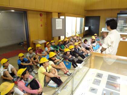 子どもたちは、社会の授業で学習した、たて穴住居や弥生時代の道具を意欲的に見学していました。メモを取ったり、係り員の方に質問したりする姿が多く見られました。