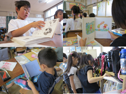 今週と来週は「読書週間」です。古城タイムや外で遊べない日の放課は、積極的に読書活動を行っています。この機会に、本のよさを伝えていきたいと考えています。