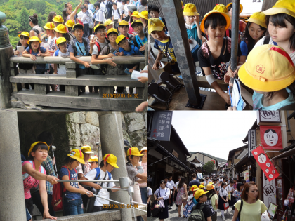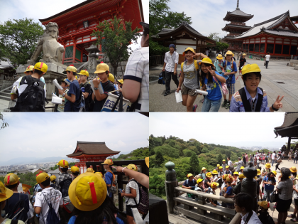 修学旅行の最後に訪れたのは「清水寺」でした。舞台からの景色をながめたり、音羽の滝で願い事をしたり……。また、参道でのお買い物も楽しみました。たくさんの店があって充実したお買い物ができたのではないでしょうか?