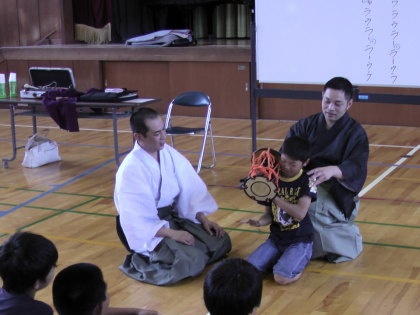 7月1日 伝統芸能鑑賞会 公開日 2013/07/01 更新日 2013/07/01 6年生の部屋 「能楽師 笛方 藤田流」竹市 学先生、「狂言師 和泉流」野村 又三郎先生をお招きして、日本の伝統芸能鑑賞会を行いました。 日本の伝統[伝承]芸能(能楽、文楽、歌舞伎)についてのお話を聞き、能の舞を実際に見せていただきました。能笛の口伝、お囃子、狂言の語りの体験もし、普段触れることのできないものに触れ、子どもたちも興味深く鑑賞会の時間を過ごすことができました。