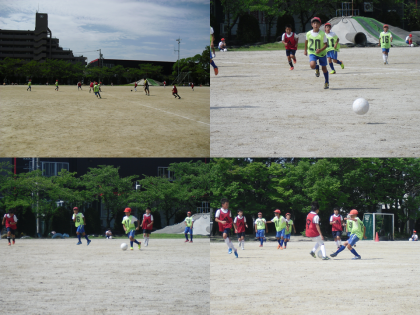夏空の下、本日は西枇杷島小学校と夏休み2度目の練習試合を行いました。前回は敗れた相手とあって、試合前から子どもたちのやる気は満々でした。グランド内を全力で駆け回り、パス回しも上手にでき、仲間のフォローも多く見られるよい試合運びとなりました。1試合目は見事勝利し、2試合目は惜しくも引き分け、3試合目は再び反省を生かし勝利することができました。