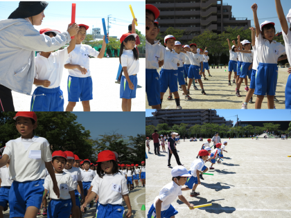 みんなの代表である紅白対抗リレーの選手も、休み時間を使ってバトンの受け渡しの練習をしています。