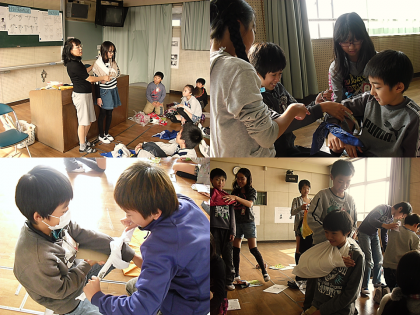 子どもたちは、総合の学習で「防災教育」について学習を進めてきたため、興味津々に授業に取り組んでいました。