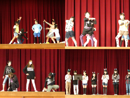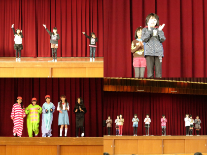 12月17日 かくし芸集会☆ 公開日 2013/12/17 更新日 2013/12/17 1年生の部屋 2日間を通して、古城タイムでかくし芸集会を行いました。8グループが、ダンスや劇、楽器演奏などを披露し楽しませてくれました。 各グループとも、休み時間等を使った練習の成果を十分に発揮してくれました。 発表を見た子どもたちは、普段とは違う友だちの姿に拍手喝采していました。