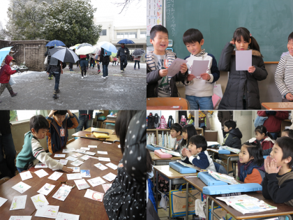 朝から雪が降り続いている中、学校公開デーが行われました。