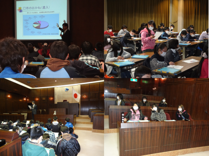 2月19日 社会施設見学(清須市役所・議場) 公開日 2014/02/20 更新日 2014/02/20 6年生の部屋 3・4時間目に清須市役所本庁舎へ見学に行きました。社会科で学んだ「税金の仕組みや働き」、「政治の役割」などついて、職員の方の話を聞いたり、議場を見学したりして学習内容の理解を深めることができました。お世話になった市役所の方々、ありがとうございました。