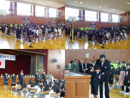 入学式 公開日 2014/04/07 更新日 2014/04/07 1年生の部屋 本日、校庭の桜が満開に咲く中、入学式が行われました。63名の古城っ子が誕生し、みんなの笑顔が輝いてみえました。 これから6年間過ごす古城小学校。素敵な未来を描いて、明日から元気に登校してください。