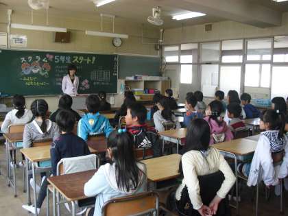 学級開き<5年生> 公開日 2014/04/08 更新日 2014/04/08 5年生の部屋 始業式の後、教室に入り学級開きを行いました。一人一人がとても真剣な顔で話を聞いており、高学年としての頼もしさを感じました。この調子で1年間、頑張ってほしいと思います。