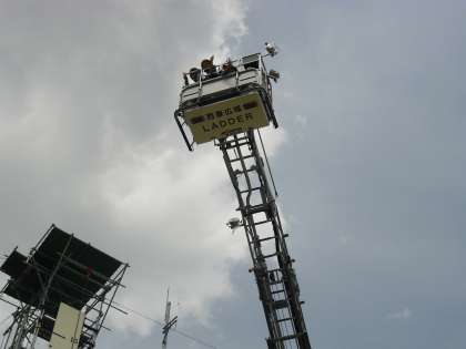 また、はしご車にも乗せていただきました。30メートルという高さに少し緊張気味の様子でしたが、上から見渡す景色にはどの子も感激していました。