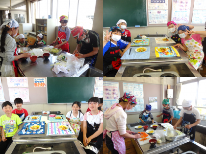 1〜2時間目に調理実習を行いました。班ごとに、野菜いためといり卵をそれぞれの役割に分かれて作りました。どの班も、協力して安全に調理を進め、おいしく作ることができました。今日の実習で学んだことを、ぜひ家庭で生かしてほしいと思います。