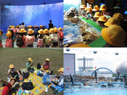 5月22日 校外学習(1年生) 公開日 2014/05/22 更新日 2014/05/22 1年生の部屋 1年生は、2年生と一緒に名古屋港水族館へ行きました。知っている生き物に喜んだり、見たことのない生き物を不思議そうに見ていたり、自分の顔よりも大きな魚に驚いたり、子どもたちのたくさんの表情を見ることができました。 待ちに待ったイルカショーでは、イルカのジャンプやフラフープ回しなどの姿に大興奮!とても楽しそうでした。 多くのことを学べた1日でした。
