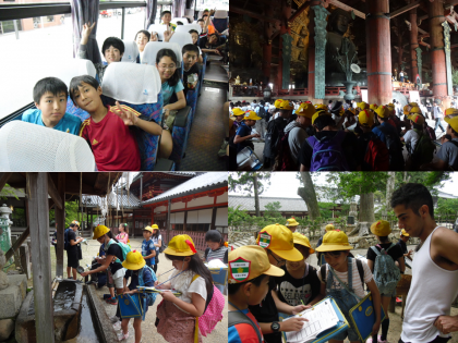 法隆寺、東大寺、金閣寺を順番に見学していきました。ガイドさんの説明を真剣に聞いて、熱心にメモを取り、歴史的建造物に目を光らせていました。