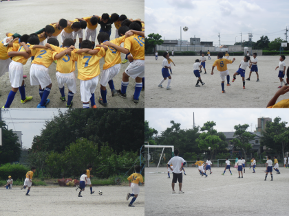 8月25日 サッカー部練習試合 VS桃栄小 公開日 2014/08/25 更新日 2014/08/25 1年生の部屋 桃栄小学校と練習試合を行いました。ユニフォームを着て計3試合を行い、3勝0敗でした。3試合目は、相手の強固な守備に苦戦しましたが、多くの選手がシュートを狙い勝つことができました。 夏休みの練習試合も残り1回です。今までの反省を生かして頑張ってほしいです。
