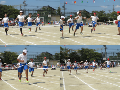 9月27日 運動会(6年生) その1 公開日 2014/09/27 更新日 2014/09/27 6年生の部屋 小学校生活最後の運動会。6年生の子どもたちは、開会式から閉会式まで、すばらしい態度でした。全員が自分の役割を自覚し、準備・片付け・運営に取り組むことができました。 競技でも悔いのないように全力で取り組み、立派な演技を見せました。特に、騎馬戦では、独特の緊張感の中で精いっぱい戦う姿が印象的でした。