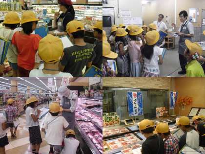 社会科の学習でスーパーマーケットの見学に行きました。子どもたちは、商品がどのようにならんでいるのか、お店ではどんな仕事をしている人がいるのかについて、「なんでこうなっているんだろう」と様々な疑問を抱きながら熱心に見学したりインタビューしたりしました。