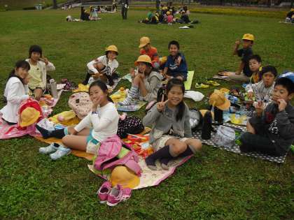 天気にも恵まれ、芝生広場で弁当を食べたり、遊具で遊んだりすることもできました。グループでなかよく、楽しい時間を過ごすことができました。