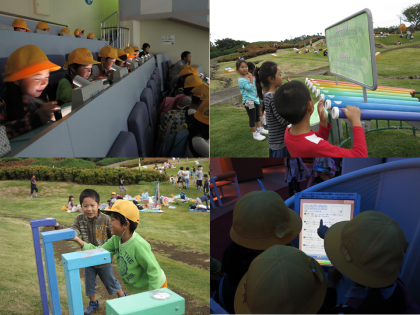 昼食後は、広場でたくさん遊びました。音をテーマにした遊具があり、とても興味深そうに遊んでいました。