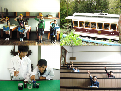 10月21日 校外学習(6年生) 公開日 2014/10/21 更新日 2014/10/21 6年生の部屋 6年生は、校外学習で明治村へ出かけました。子どもたちは、明治時代の建造物を熱心に見学し、歴史や文化への興味が高まったことと思います。また、明治時代の味覚体験として、カレーパン・コロッケ・小倉ドッグ(どれか1つ)を食べました。 グループ行動の中で、助け合う姿がたくさん見られ、ワークシートにもたくさんメモを取ることができました。学んだことを、今後の学校生活に生かしてほしいと思います。