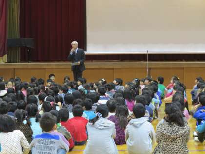 「誰かが悲しそうにしているとき、つらそうなとき気付いてあげられる人になってほしい」というように子どもたちに語りかけるように話し、子どもたちも真剣なまなざしで聞いていました。来週8日には、人権擁護委員の方による人権集会も予定されています。