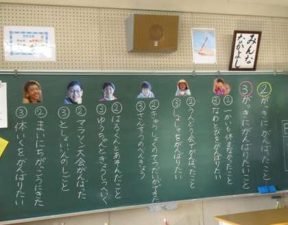 今日は2学期の終業式でした。体育館は寒かったですが、校長先生のお話と、冬休みの生活についてのお話を聞きました。教室に戻ってから、2学期にがんばったことと3学期にがんばりたいことを一人ずつ発表しました。思い思いに2学期を振り返り、3学期に向けてのめあても見つけることができました。体調を崩すことなく、6人全員で迎えられた終業式。3学期の始業式も、みんな元気で迎えられるといいなと思います。