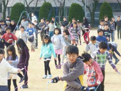 1月14日 古城タイム(なわとび) 公開日 2015/01/14 更新日 2015/01/14 お知らせ 今日から全校でのなわとび練習が始まりました。古城タイムに1分間跳びをはじめ、いろいろな跳び方を練習します。寒さに負けず古城っ子たちは元気に体を動かしています。