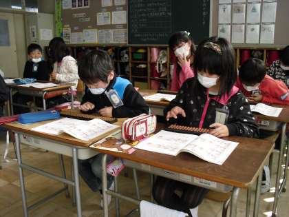 本日、子どもたちが楽しみにしていた珠算教室を行いました。講師の先生方が基本的な操作の仕方を丁寧に教えてくださったので、どの子も抵抗なく参加することができました。しかし、そろばんの扱いにはまだ慣れていないので、経験のない子たちには少し難しいと感じたかもしれません。