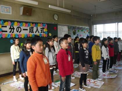 子どもたちは、「2分の1成人式」を通して、おうちの方がどんなに大切に思ってくださっているかがよく分かったと思います。普段は、なかなか伝えられない感謝の気持ちを伝えることができ、とても温かい式になりました。ご協力、ありがとうございました。