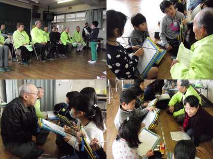 前半はグループに分かれて、昔の生活の様子や今と昔の暮らしの違いなどのお話を聞きました。たくさんメモをとったり、質問をしたりして、話し合いが盛り上がりました。