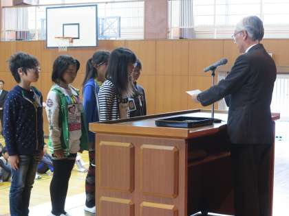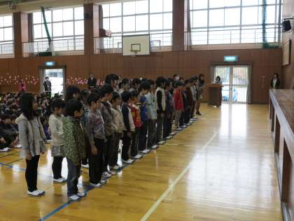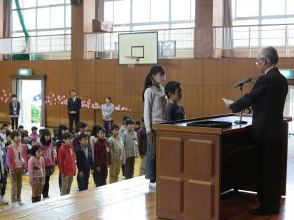 平成27年度前期児童会役員・代表委員・学級委員の任命式を行いました。古城小学校の、また各学級のリーダーとして活躍してくれることを期待しています。