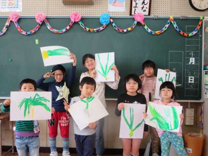 教室に帰ってから、葉と根のついたタマネギの絵を描きました。みんな画面いっぱいに描くことができました。