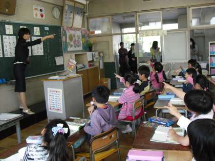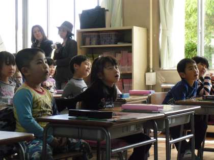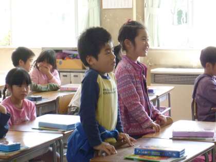 給食を食べ終えたころから、何だかそわそわ落ち着かない様子の子どもたち。「まだかな」「そろそろかな」と廊下をのぞきこみ、保護者の方の姿が見えると「あっ、○○君のお母さんだ!」と歓声をあげていました。1組・2組とも、国語の「うたにあわせて あいうえお」で、いろいろな読み方で音読をしたり、あいうえおの文字を正しい書き順で書く練習をしたりしました。どの子も、元気いっぱい楽しく学習に取り組むことができました。