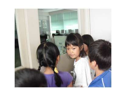 2時間目に生活科の授業で、2年生と一緒に学校たんけんをしました。子どもたちは、熱心に2年生の説明を聞きながら、いろいろな教室を見学しました。1年生の教室にはない物をたくさん発見することができました。次は、1年生だけで学校たんけんをします。教室の中にも入って見学をすることができるので、とても楽しみですね。