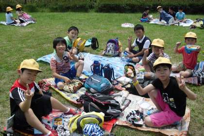 お昼は、芝生広場でお弁当を食べました。どの子もうれしそうにお弁当を広げ、おいしそうに食べていました。