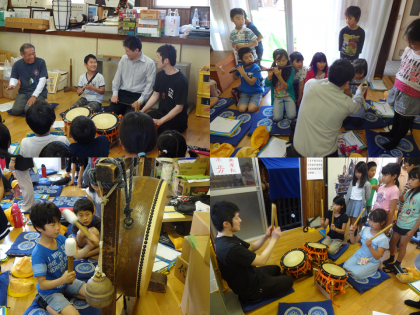 尾張西枇杷島まつりの山車の見学へ出かけました。実際に使われている山車に乗ったり、笛や太鼓などを演奏してお囃子の体験をしたりしました。真剣に話を聞きながらメモをとり、まつりについて学ぶことができました。