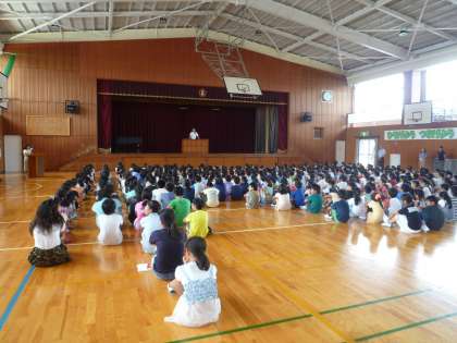 終業式 公開日 2015/07/21 更新日 2015/07/21 お知らせ 台風の影響が心配され、予定より1日早く行われた終業式。いつもとは違う日程で行われたのに整然と校長先生の話を聞くことができたのは、さすが古城っ子です。大きな声で校歌も歌いました。教室では、一人ずつ丁寧に担任の先生から通知表をもらっていました。 夏休みの始まり。どの子もすてきな夏休みになりますように!