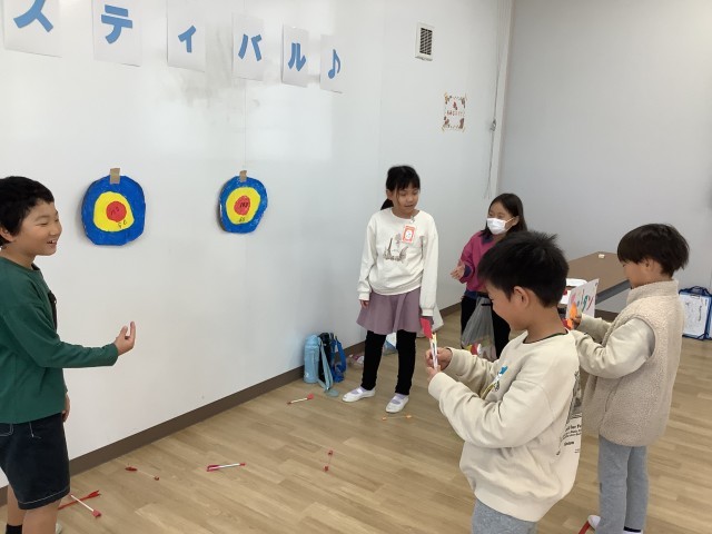 グループに分かれてお店の準備をした後に、スタンプを押して、遊び方を説明しました。1年生の笑顔が見られ、2年生も達成感に満ち溢れた様子でした。