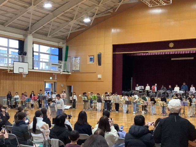 金管バンド部演奏会 公開日 2026/02/12 更新日 2026/02/12 お知らせ 2月10日(火)金管バンド部の演奏会を行いました。 校歌などの演奏や楽器紹介が行われ、美しい音色が体育館中に響き渡りました。最後の部活動にかける思いが伝わってくる素敵な演奏でした。 いいね(4)