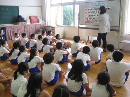 9月8日(火)に身体測定を行いました。その際に養護教諭の先生から保健指導を受けました。「はやいあし」の合言葉をもとに、怪我なく元気で清潔な過ごし方を学びました。