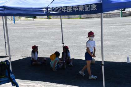 1時間目は、日陰なども活用しながら体育をしましたが、あっという間に「原則運動中止」の赤コーンが立ちました。