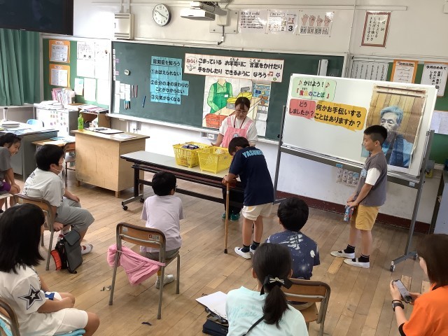 1日目は「車いす」と「手話」、2日目は「点字」と「認知症」について学びました。講師の先生の話を真剣に聞いていました。今回の体験をもとに自分たちにできることを考えていきたいです。