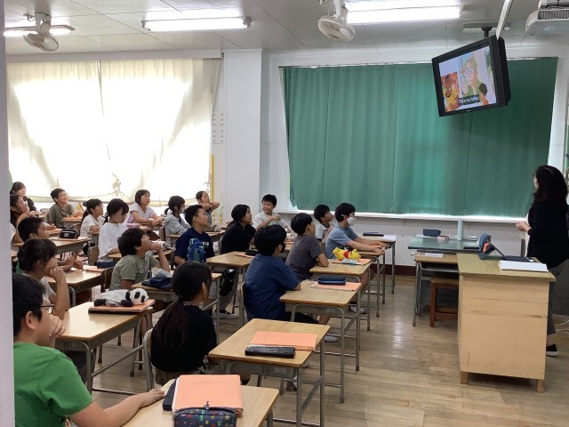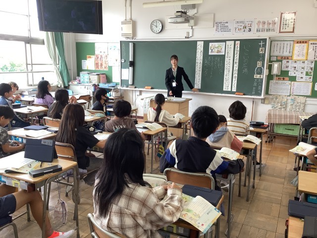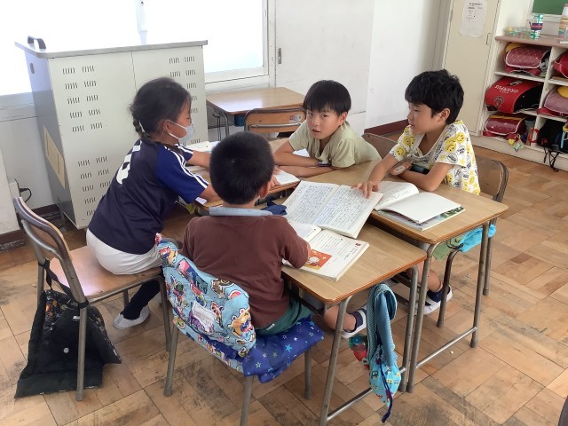 国語の授業では、班で役割を決めて話し合い活動ができるように、進めています。どの班も、司会者の話をきいて、意見交流を楽しみながら進めている姿がありました。