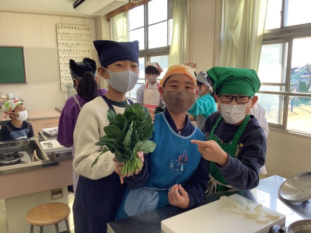 今回、西春日井農協様よりほうれん草の寄付をしていただき、ほうれん草のみそ汁を作りました。