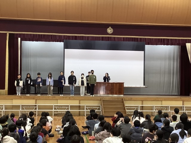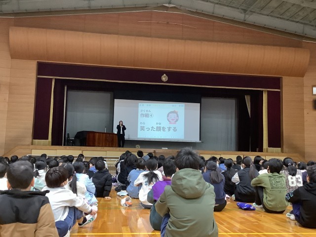 朝礼で表彰伝達と校長先生のお話を聞きました。校長先生のお話では、ご機嫌でいる方法を5つ教えてもらいました。そして、ご機嫌な気持ちは伝染するということも知ることができました。子どもたちにはこれからもポジティブな発言や気持ちをもち、明るい雰囲気を伝染させていってほしいですね。