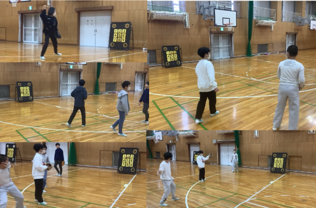 大谷選手からいただいたグローブを使って遊んでいる様子です。あきまつりの収益金で買っていただいたターゲットネットも楽しく使わせていただきました。