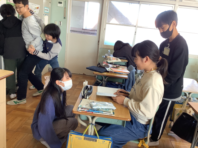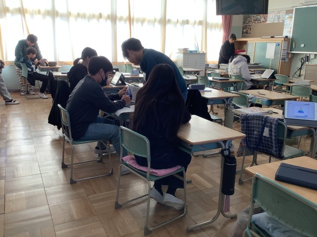 休み時間の教室での様子です。気温がぐっと低くなり、室内で友達と話をしたり、タブレット端末で授業の課題を進めたりしながら休み時間を過ごす児童が増えてきました。怪我や感染症に気をつけながら、残りの4か月間、教室でもたくさんの思い出を作っていけたらと思います。