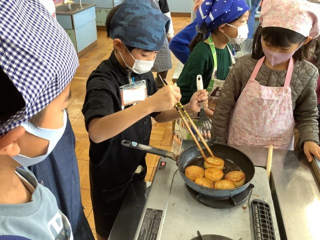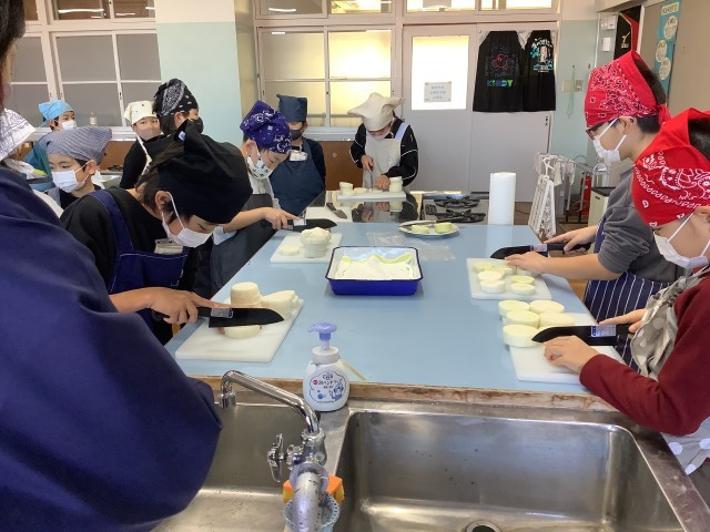 皮むき、包丁で切る、調味料を合わせる、焼くなどといった調理をグループのメンバーで役割分担をし、協力して取り組みました。