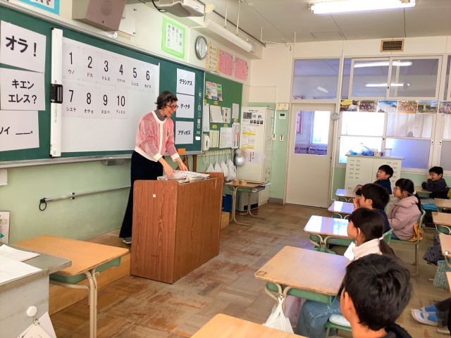 エリザベス先生から、スペイン語のあいさつについて学びました。