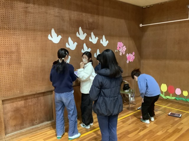 高い位置に掲示したり、役割を分担して活動する姿が見られました。